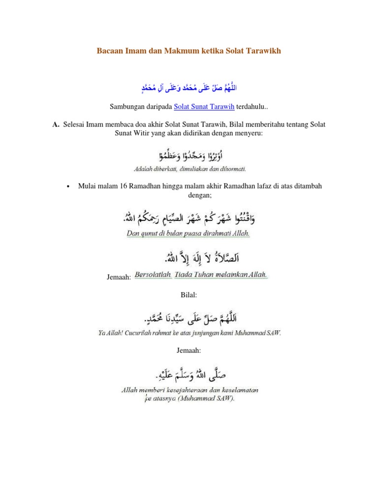 Bacaan Imam Dan Makmum Ketika Solat Tarawikh Pdf
